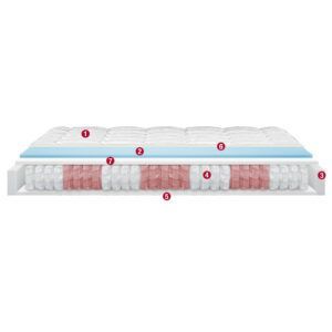 La sua struttura a 1000 molle indipendenti sostiene il corpo durante tutte le fasi del riposo, mentre lo strato in PiTech® migliora il senso di accoglienza del materasso e garantisce un sonno rigenerante.