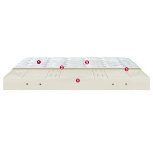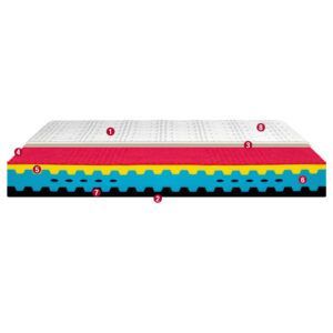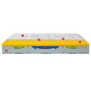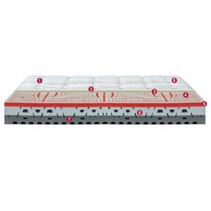 La lastra in schiuma di Lattice 100% a 7 zone a portanza differenziata lo rende anatomico, accogliente e accompagna il corpo in ogni suo movimento, ottenendo un elevato grado di comfort.