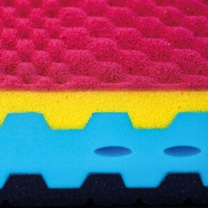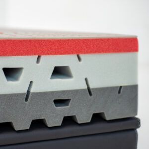 Gli inserti presenti nel secondo strato sono di due differenti tipologie: nella parte centrale troviamo il Touch Foam di elevata portanza e densità per consentire il corretto sostegno nella zona del bacino, mentre nelle altre abbiamo un Breeze Foam traspirante, grazie alle sue celle aperte, che permette un corretto ingresso nella zona delle spalle. Ciò che differenzia le due versioni di Nutrice è il secondo strato, che è costituito da un Touch Foam di differenti portanze: troviamo un sostegno medio nel modello Soft ed uno alto in quello Firm.