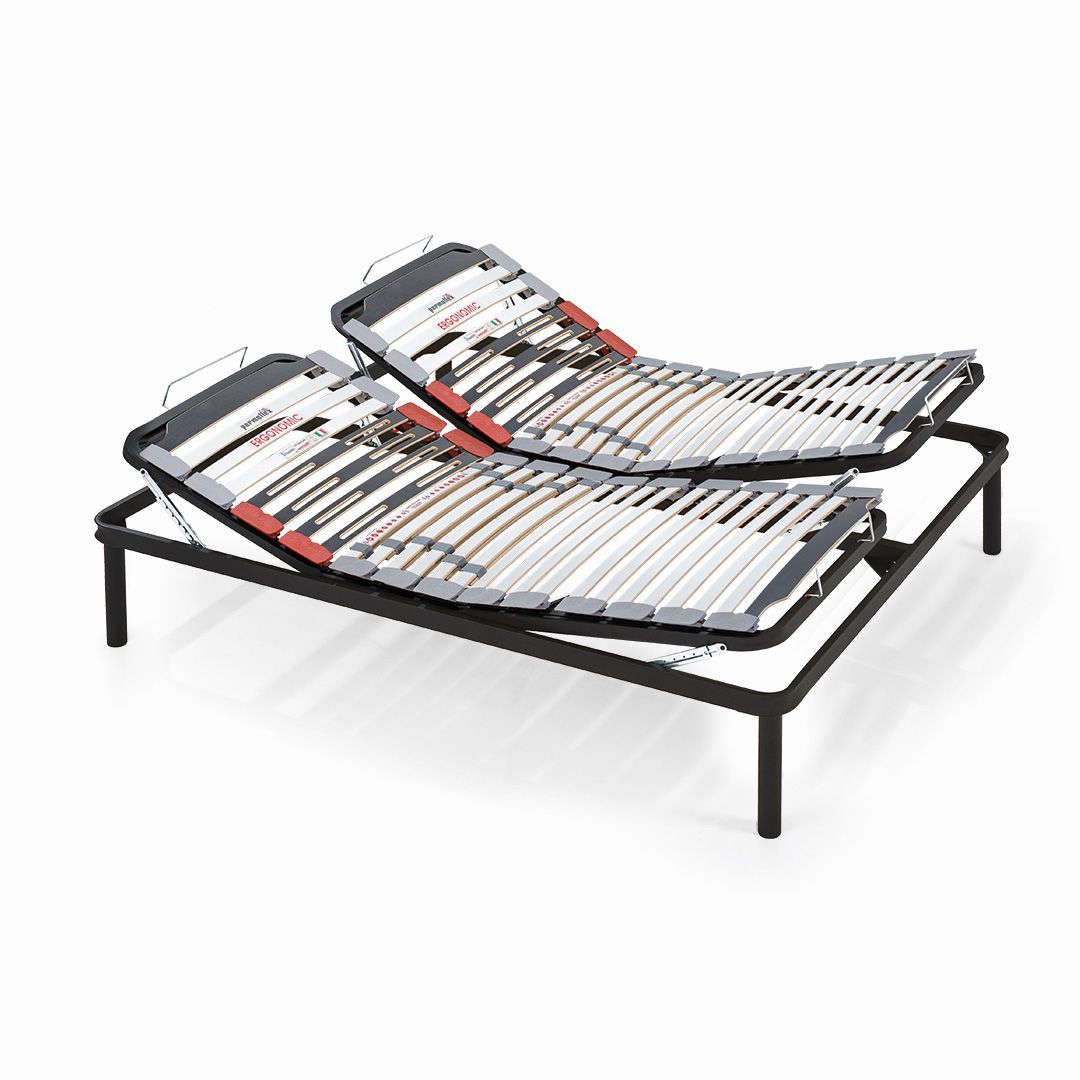 Quattro doghe asolate nella zona spalle garantiscono la massima traspirabilità in una delle zone più critiche durante il riposo. Portadoghe in SEBS® ad alta densità rendono uniforme il piano di riposo. Telaio in Ferro 50×20